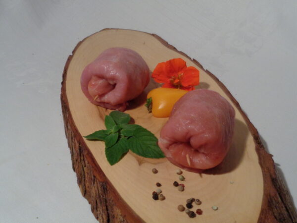 Große Schweinerouladen aus der Oberschale geschnitten. Gefüllt mit Röstzwiebeln.